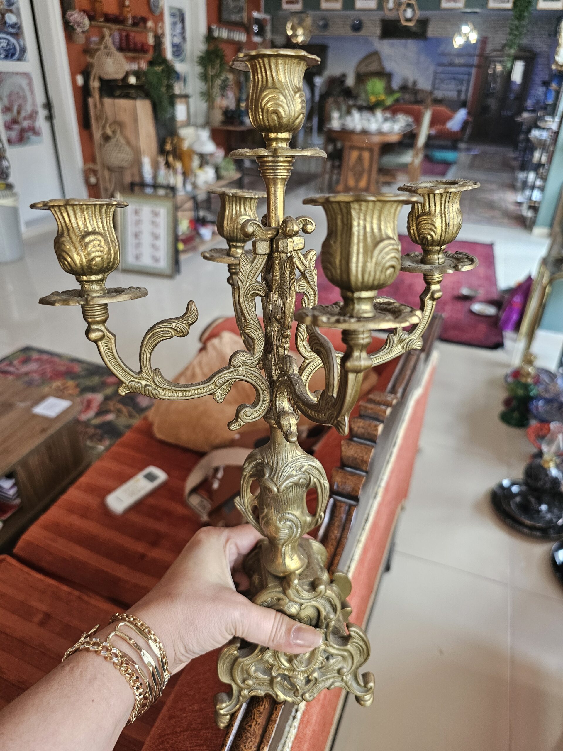 5 Kollu Bronz Şamdan